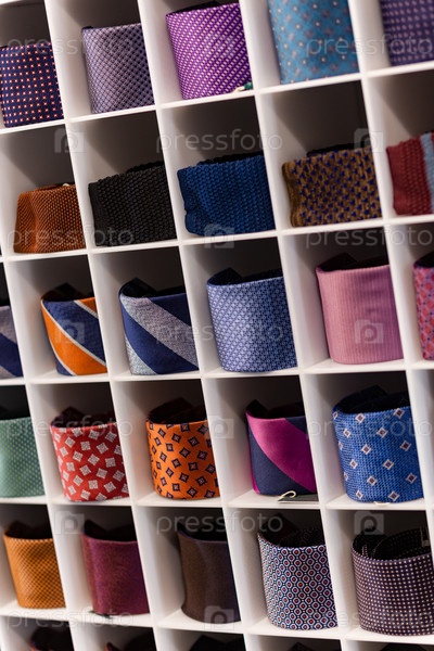 Вид галстуков разных цветов в витрине