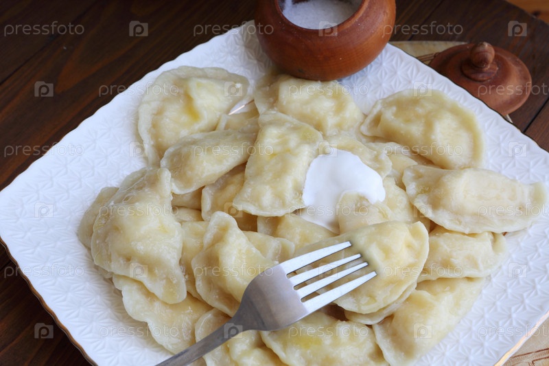 Вареники с творогом на деревянном столе