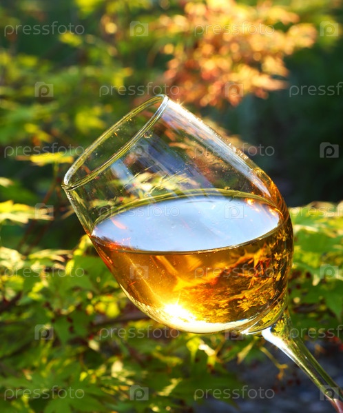 Бокал белого вина в винограднике