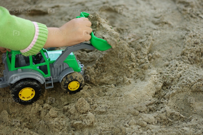Ребенок с зеленым экскаватором