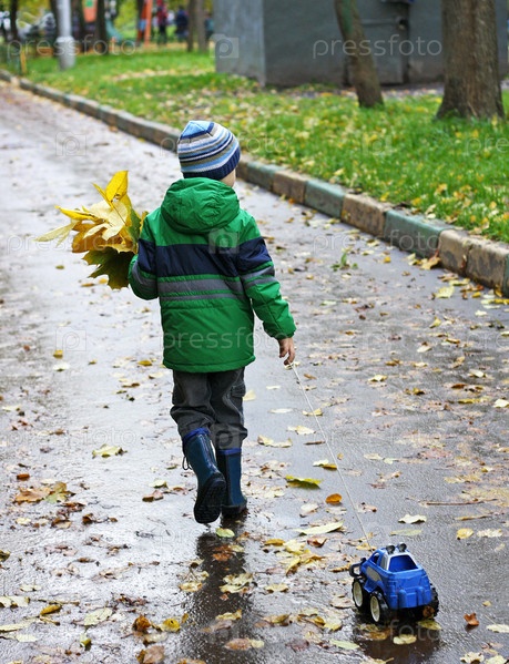 Мальчик с букетом листьев