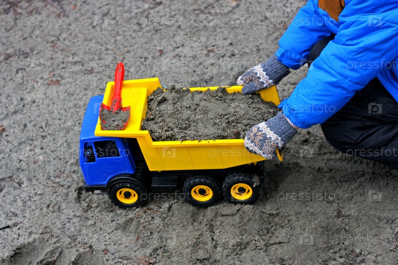 Мальчик, который загружает песочную машинку