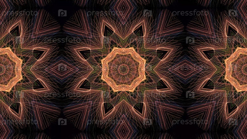 Мандала, калейдоскоп, восточный зеленый и золотой узор на черном фоне