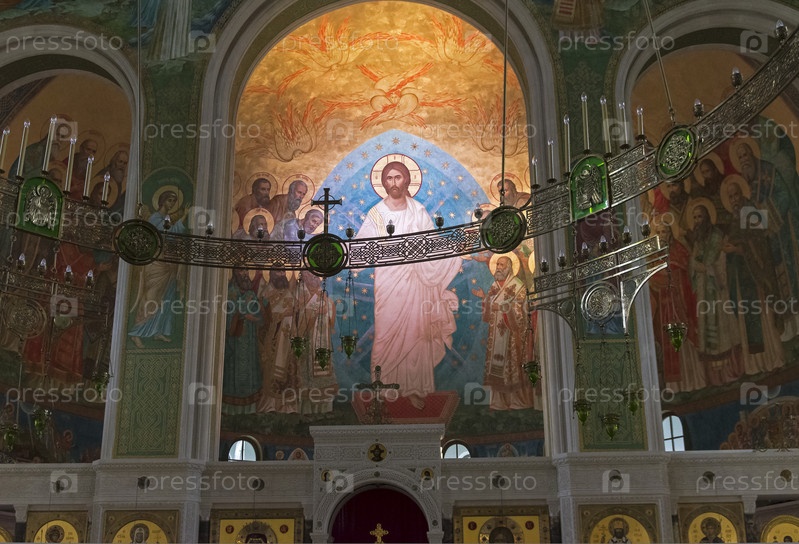 Роспись стен в православном храме. Церковь Воскресения Христова и Новомучеников и исповедников Церкви Русской, Москва, Россия
