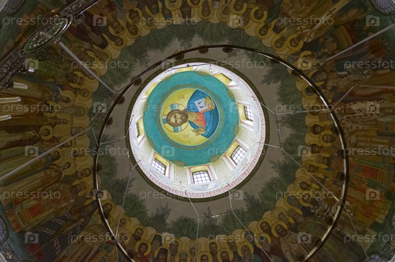 Роспись стен и купола в православном храме. Церковь Воскресения Христова и Новомучеников и исповедников Церкви Русской, Москва, Россия