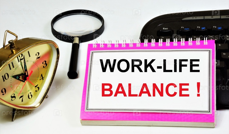 Баланс между работой и личной жизнью! Концептуальная текстовая надпись в блокноте планирования. Забота о здоровье на работе и в личной жизни