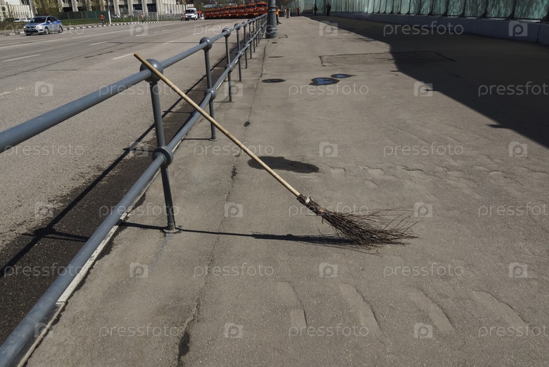 Метла на тротуаре