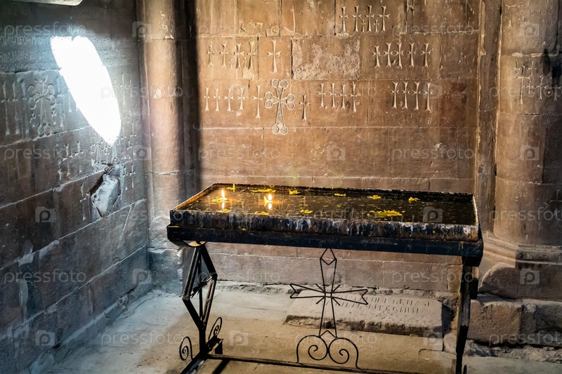 Армения, Нораванк, сентябрь 2022 г. Кованый металлический подсвечник внутри храма