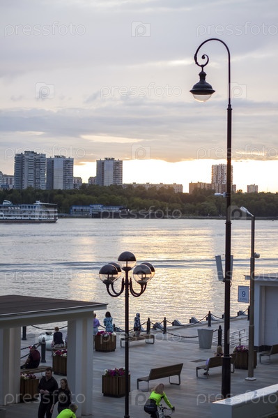 2022-07-17. Россия. Москва. Северный речной вокзал. Променад. Прогулка по набережной на самокатах в летний день