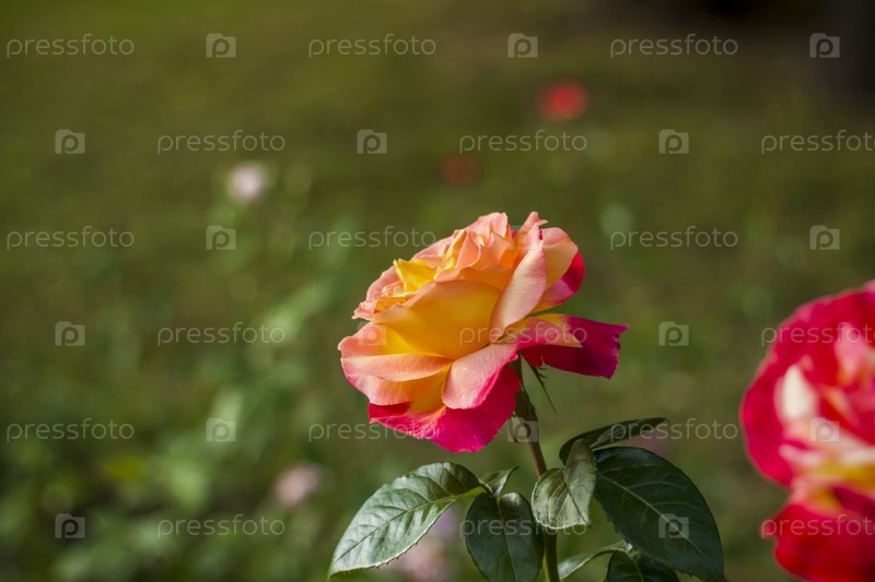 Красивые и яркие розы растут на клумбе в парке. Прогуляйтесь по парку летним днем и посмотрите на красивые цветы. Селективный фокус, цветочные обои