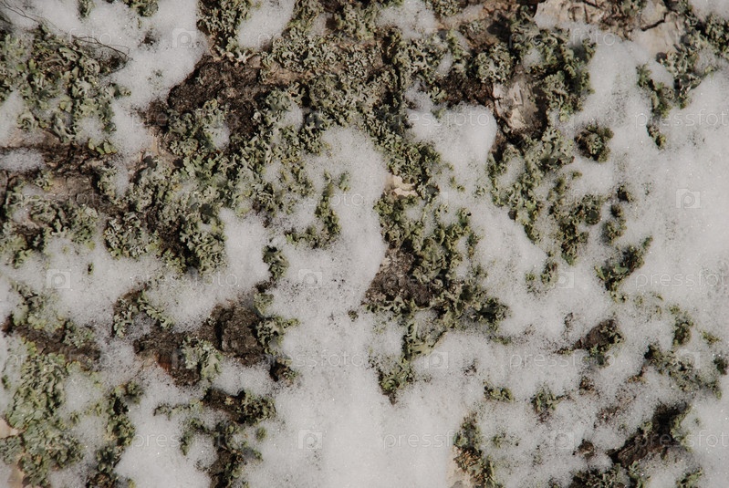 Текстура ствола березы покрыта мхом и снегом. План зимнего дня для ствола березы. Ствол белый с черными пятнами, зеленым мхом и белым снегом