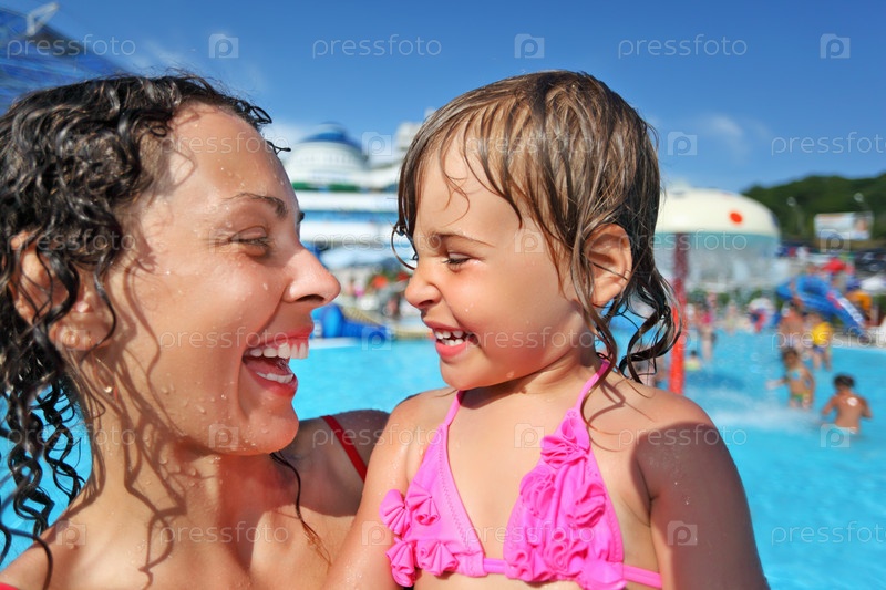 Молодая женщина с ребенком в бассейне