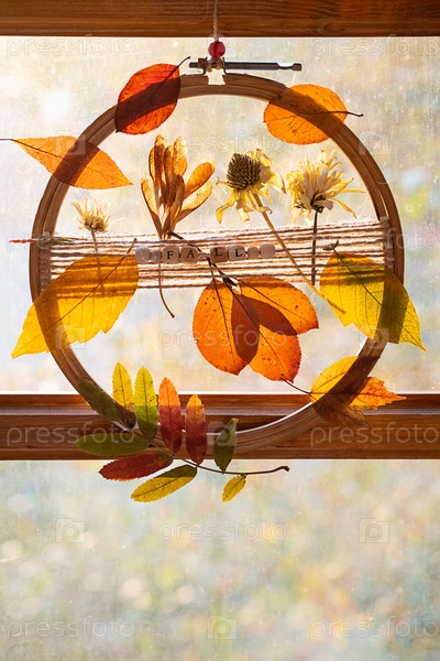 Венок на дверь своими руками из осенних разноцветных листьев и цветов. Осенний домашний декор
