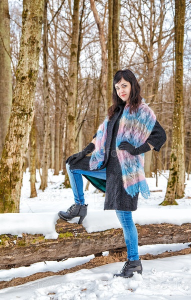 Молодая красивая женщина в лесу зимой
