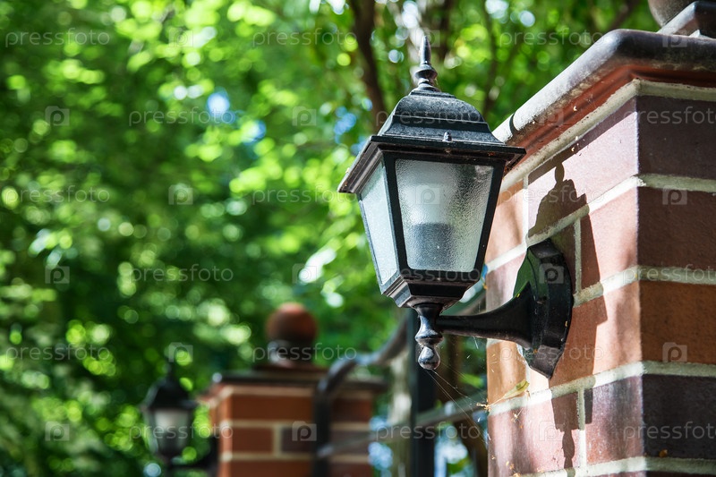 Декоративный фонарь на столбе у ворот