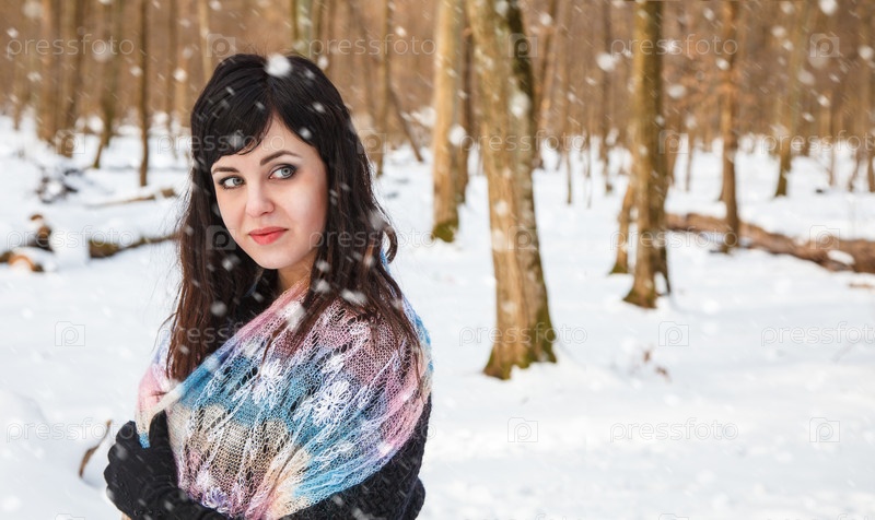 Портрет молодой красивой женщины, идущей по лесу
