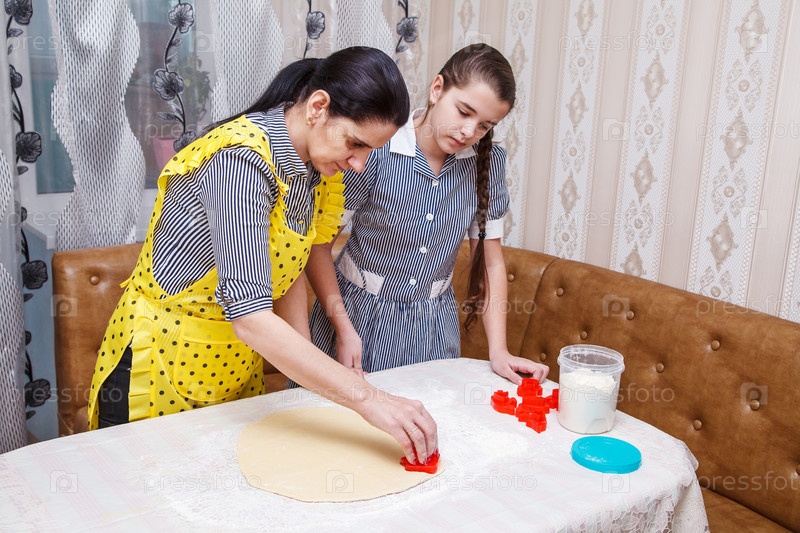 Мама и дочка пекут домашнее печенье