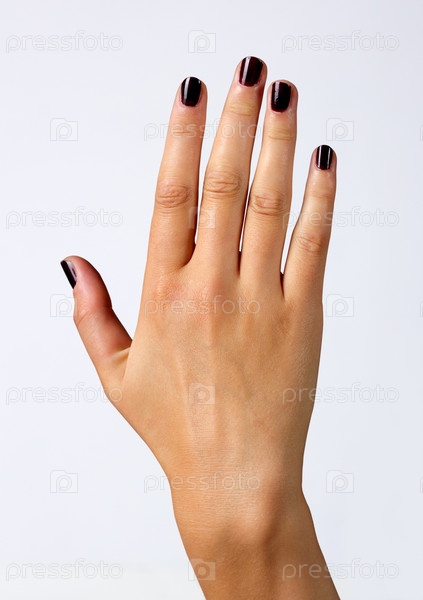 Женская рука с раскрытой ладонью крупным планом на светлом фоне