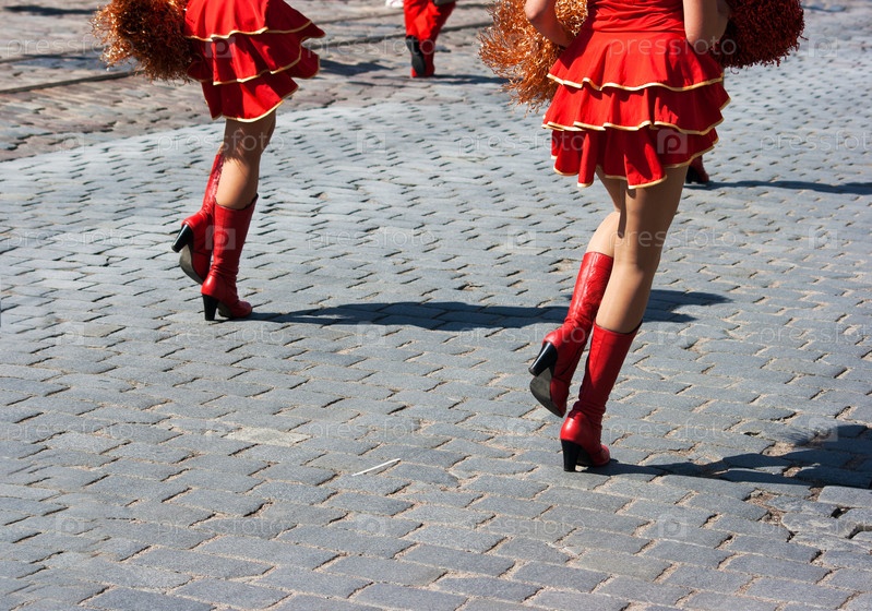 Чирлидеры маршируют по городской улице