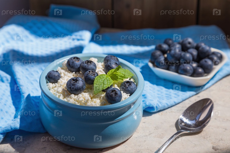 Утренний свежий завтрак из натуральных продуктов из творога и черники
