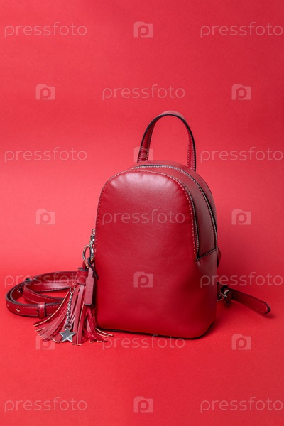 Модный женский рюкзак на красном фоне