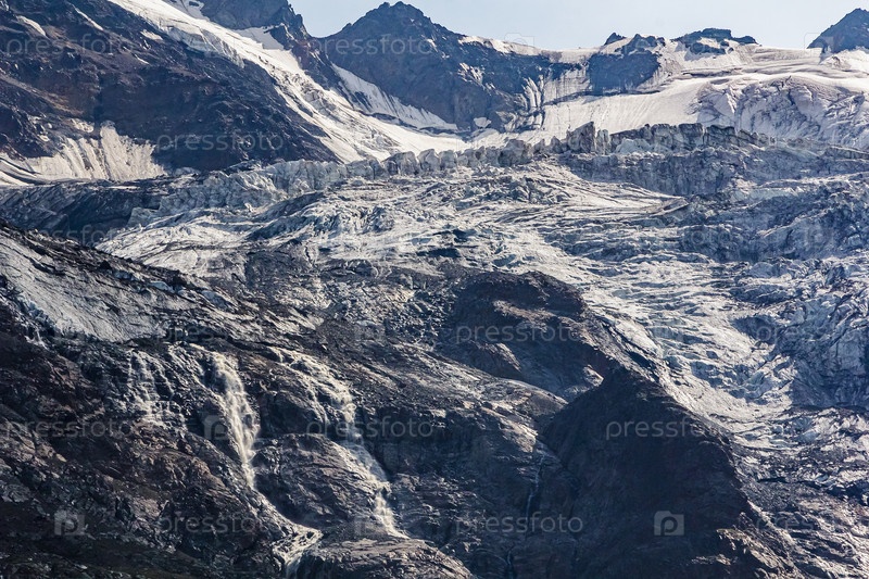 Ледник в горах Северной Осетии. Острые вершины гор Северного Кавказа