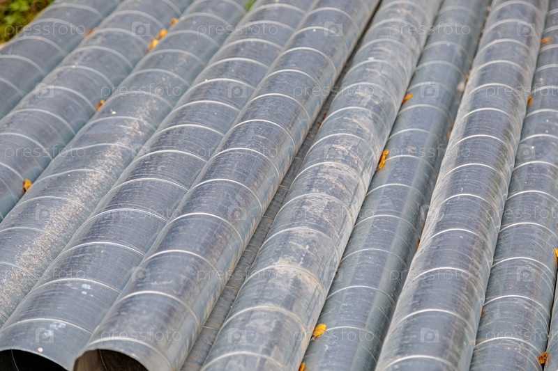 Металлические трубы для вентиляции на строительной площадке. Вентиляционные трубы