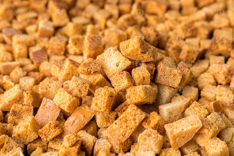 Панировочные сухари квадратной формы. Золотисто-коричневые хлебные крошки, обжаренные в духовке. Фон