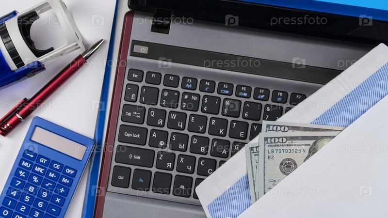 Конверт с деньгами на клавиатуре