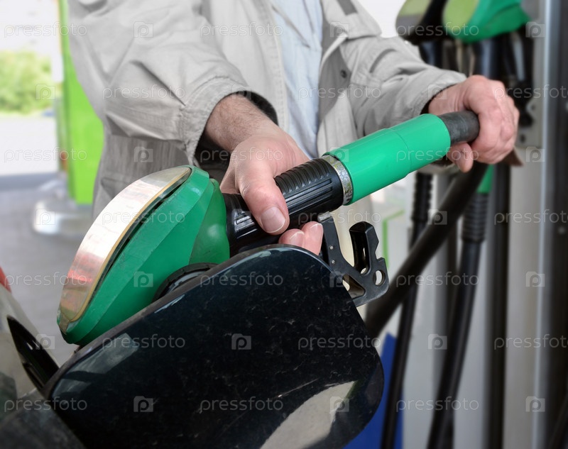 Мужская рука с топливным соплом