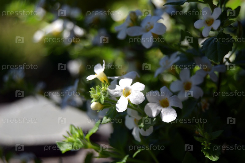 Белая лобелия в полутени, цветочный фон