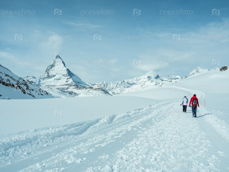 Походная тропа в зимних горах, швейцарские зимние Альпы
