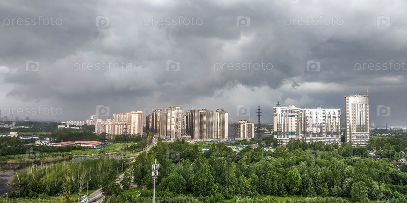 Панорамный вид на новостройки, пасмурно