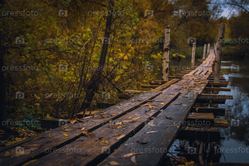 Старый деревянный мост через реку