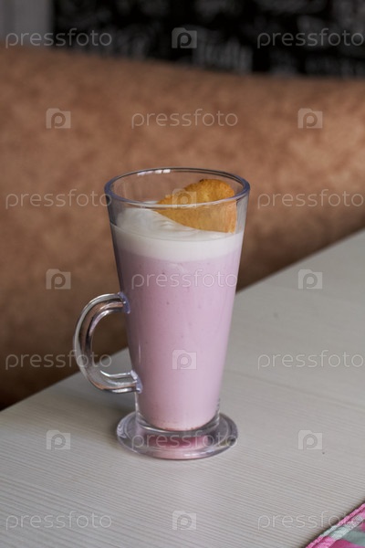 Малиновое суфле в стеклянном бокале. находится на столе. Крупный план