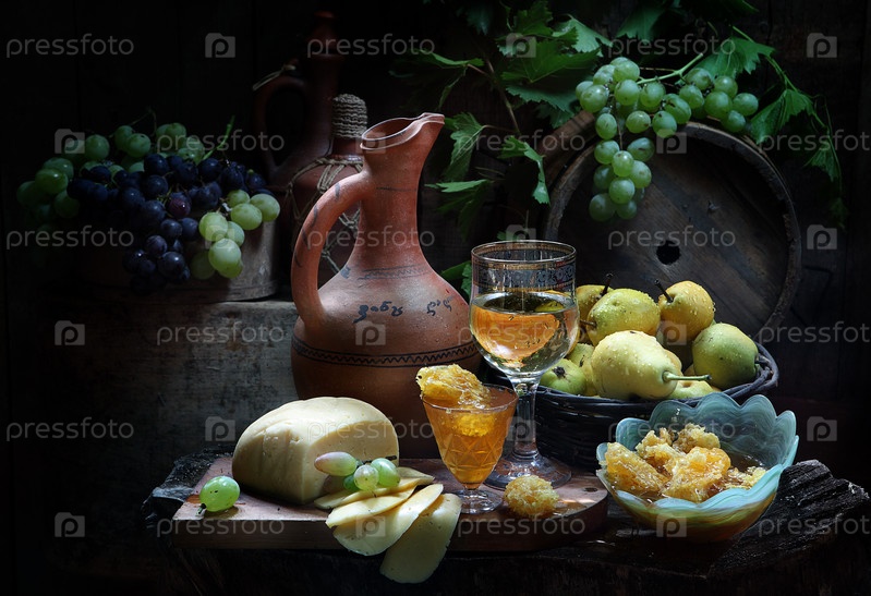 Натюрморт с красным вином и арбузом