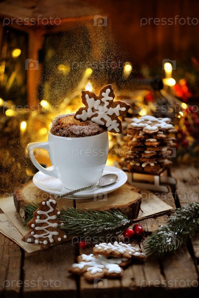 Горячий шоколад со сливками и имбирным печеньем