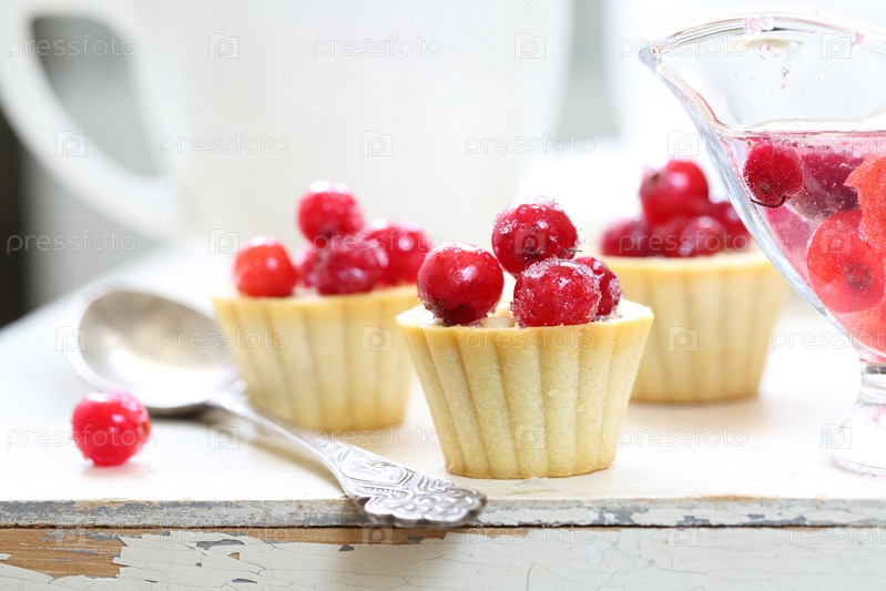 Натюрморт с пирожными с клюквой и кофе на белом фоне