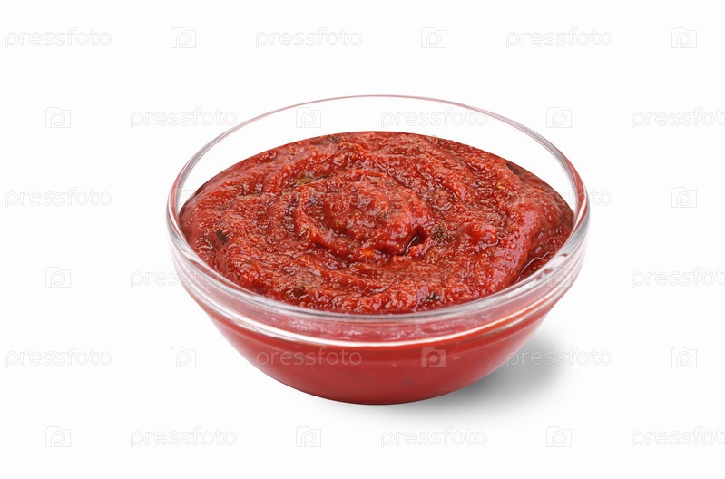 Томатный соус с кинзой на белом фоне