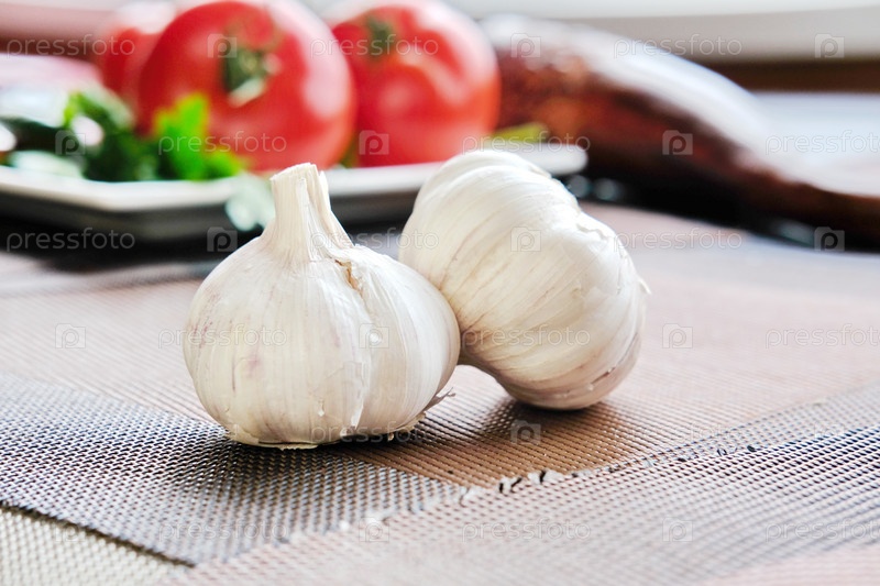 Полезен при простуде и болезнях свежий душистый чеснок на столе
