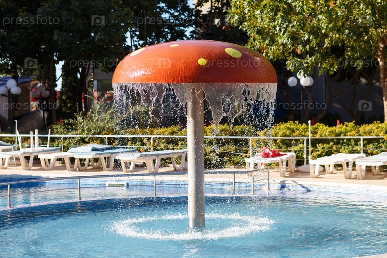 Брызги воды и капельки воды из фонтана в виде гриба