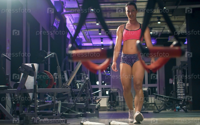 Спортивная женщина в тренажерном зале. Фитнес, спорт, концепция бодибилдинга