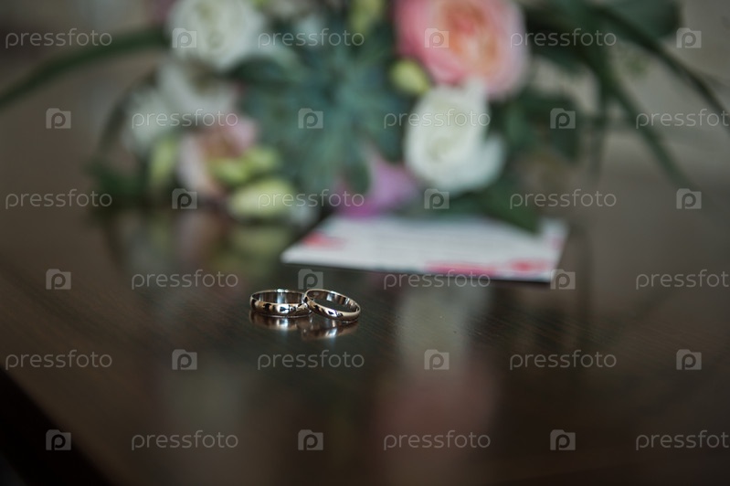 Обручальные кольца на стеклянной поверхности