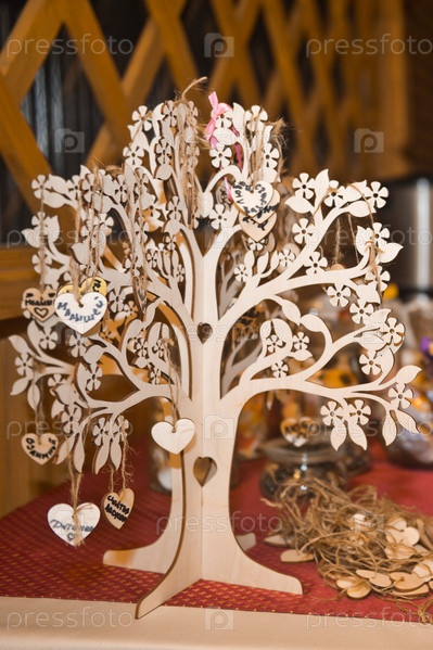 Генеалогическое древо, вырезанное из фанеры, с вашим именем на листках бумаги в
