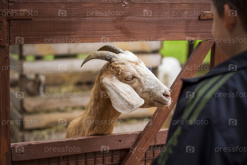 Животные в вольере в небольшом городском зоопарке. Животных кормят с рук посетителей, а дети могут их погладить