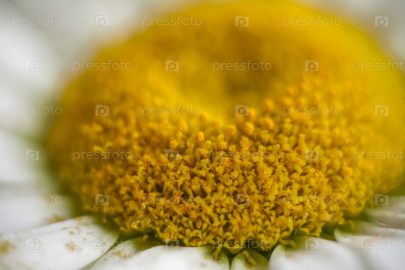 Середина ромашки — крупный план. макросъемка цветка. Средний план, выборочный снимок. Выборочный фокус