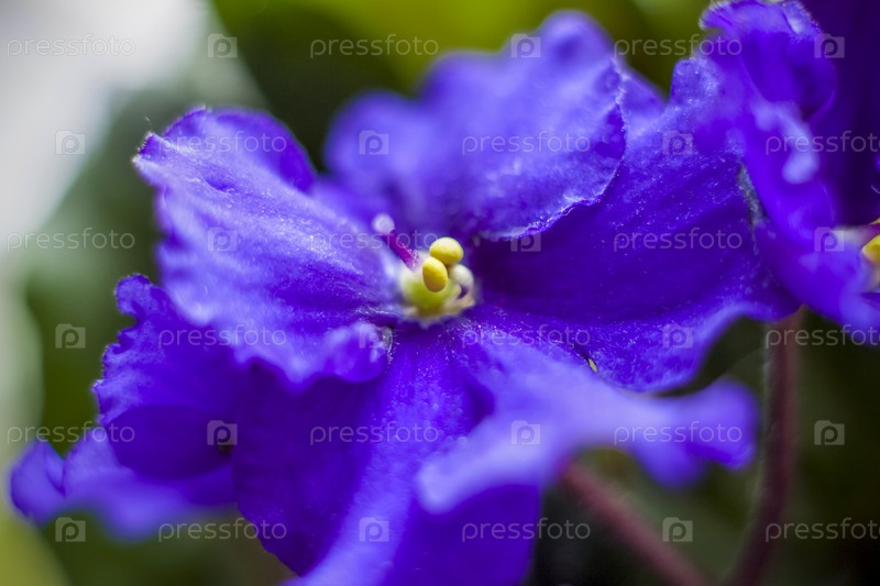 Красивый фиолетовый цветок в макросе конца-вверх. Фиолетовый цветок на фоне размытой природы. Макро фотография