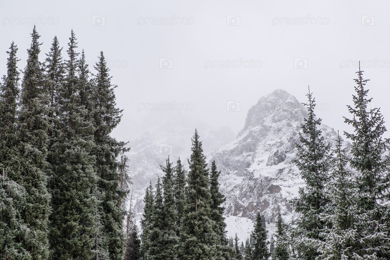 Снежные горы с деревьями