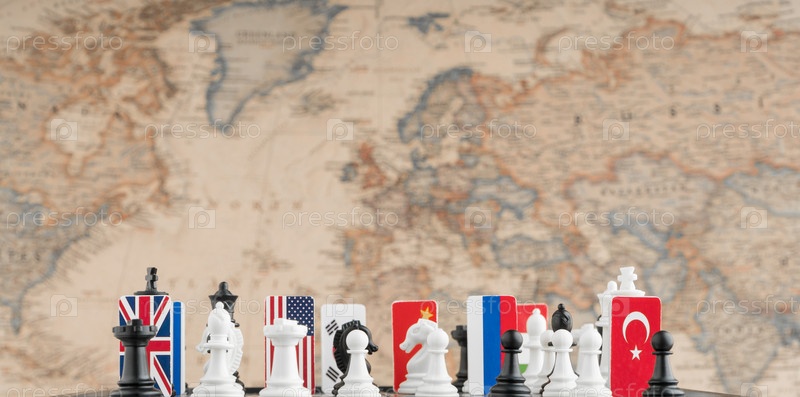 Шахматная доска с флагами стран