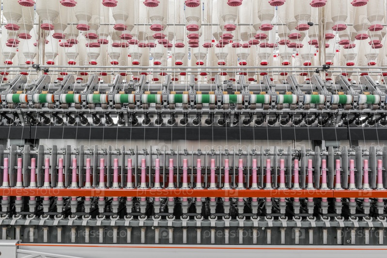 Катушки с нитками на текстильной фабрике